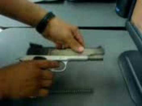 El .45 ACP (11,43 x 23) es un calibre grueso, con un alto poder de detención, pero también con cierto retroceso. Dispara balas de unos 14 g a 250 m/s.